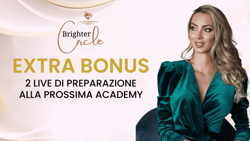 Accedi al Brighter Circle a 197€ anziché 297€ , ottieni accesso a 3 moduli esclusivi con Alice, 14 Masterclass e partecipa alla prossima edizione della Brighter Me Academy